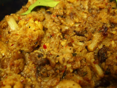 - Add the grounded paste and saute to coat the cauliflower with the paste.